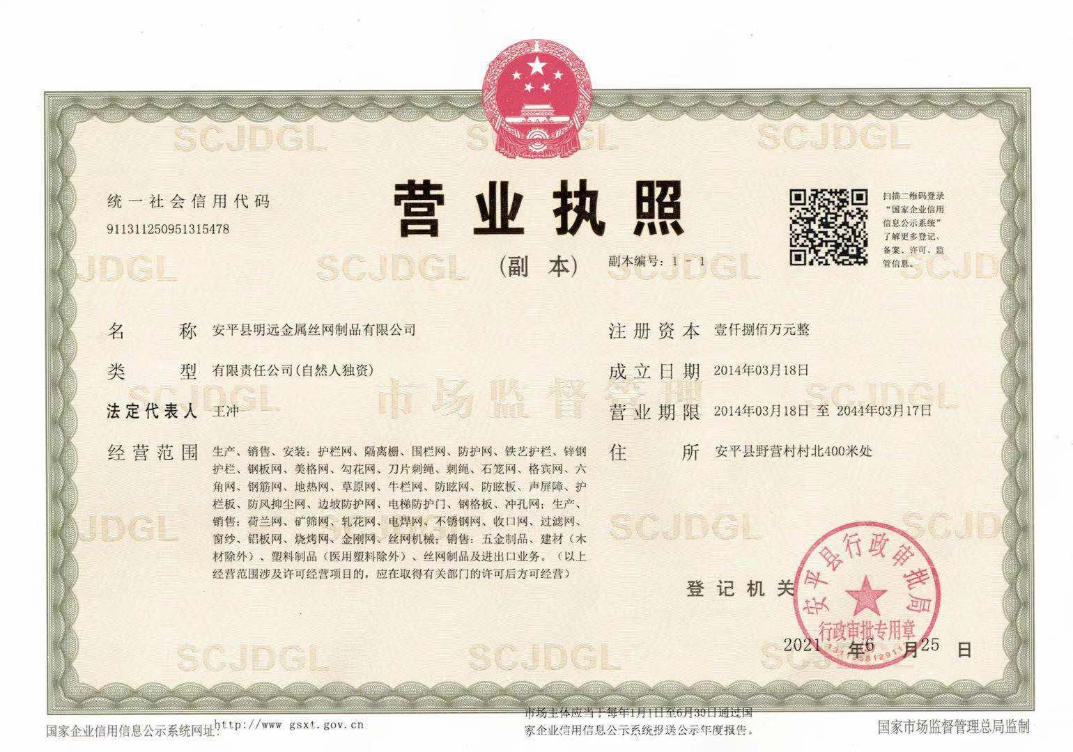 明遠(yuǎn)圍欄 · 10年榮譽(yù)證書國際先進(jìn)的工藝技術(shù)及生產(chǎn)加工設(shè)備